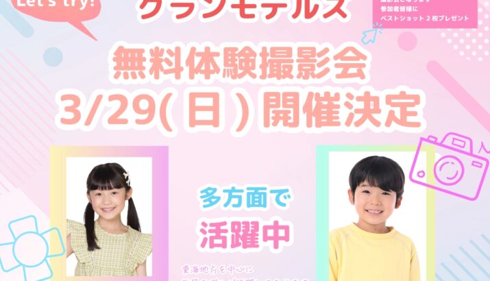 次回の無料体験撮影会は2026年3月29日(日)に開催いたします。たくさんのご応募お待ちしております。
