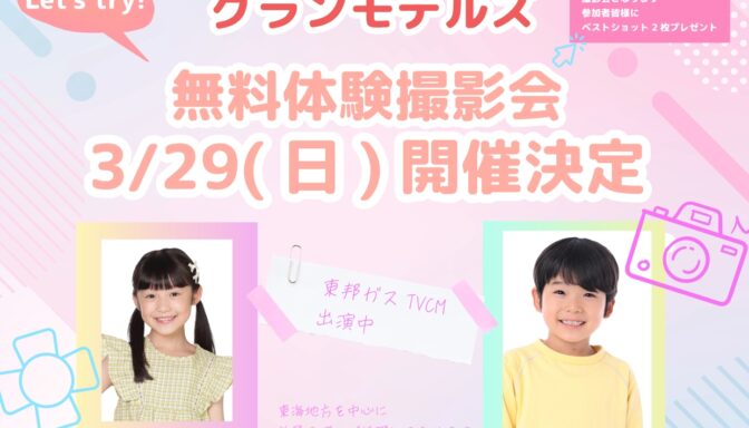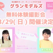 NEWS 2026.02.17 2月☆NEW FACEを追加しました GIRLS ・田中 菜月 BOYS ・佐野 湊 よろしくお願いいたします! 記事のタイトルとURLをコピーする Post Share RSS グランモデルズ無料体験撮影会のお知らせ 前の記事